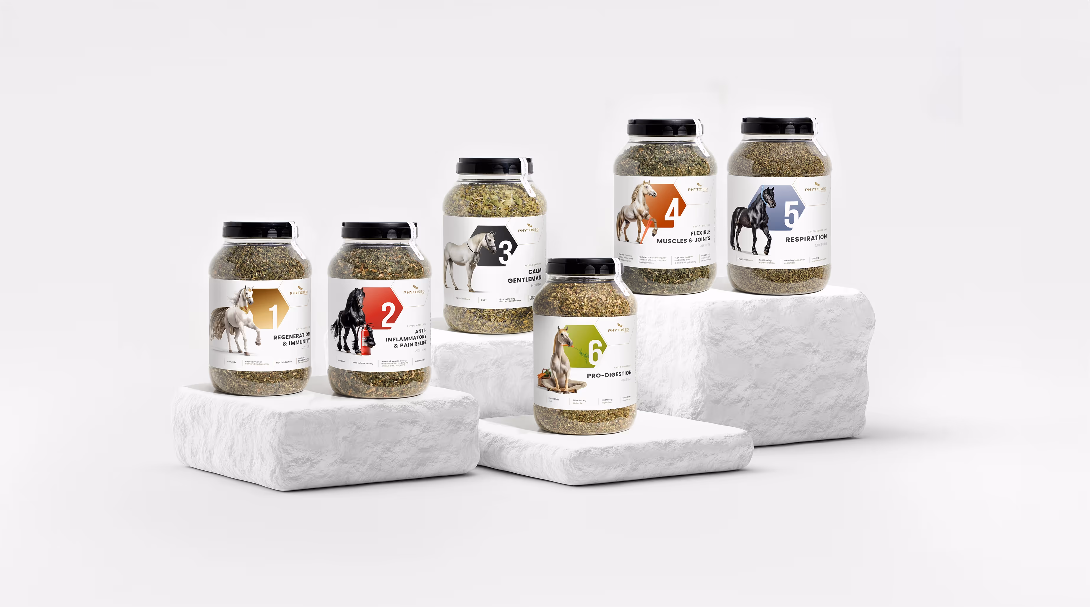 No to wymyśliliśmy: dla każdej z sześciu mieszanek tworzymy konia-superbohatera, który odzwierciedla moc danej mieszanki. Tak powstały konie-superbohaterowie. Każda etykieta dostała swój kolor, a te konie? To prawdziwi herosi stajni! Nasz ulubieniec? Koń z mieszanki nr 6 – w pozie pełnej chillu, z marchewką w zębach, wygląda jak superbohater, który właśnie okiełznał wszystkie końskie troski. Ten design przyciąga wzrok i pokazuje, że te zioła to prawdziwa supermoc w słoiku!